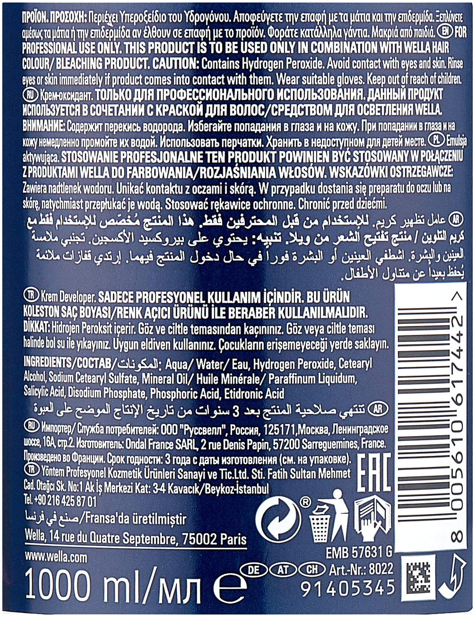Wella Professionals Окислитель Welloxon Perfect 6% 1000 мл. KP ME+ информация: