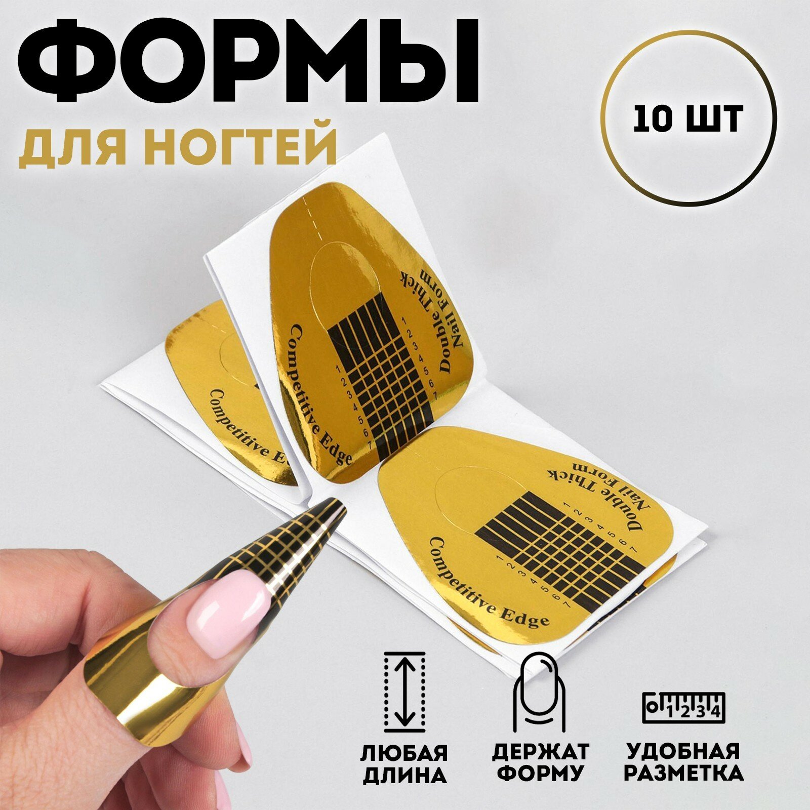 10 цен на Формы для наращивания ногтей, широкие, 10 шт, цвет золотистый (комплект из 88 шт)