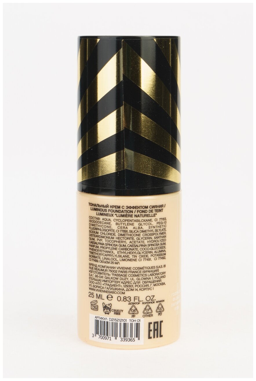 Vivienne Sabo Тональный крем с эффектом сияния/Luminous Foundation/Fond de teint lumineux "Lumiere naturelle" тон 01 информация: