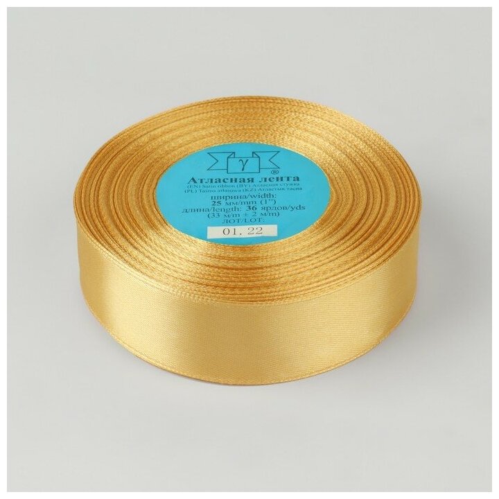 Лента атласная, 25 мм × 33 ± 2 м, цвет горчичный №148 (1 шт.)