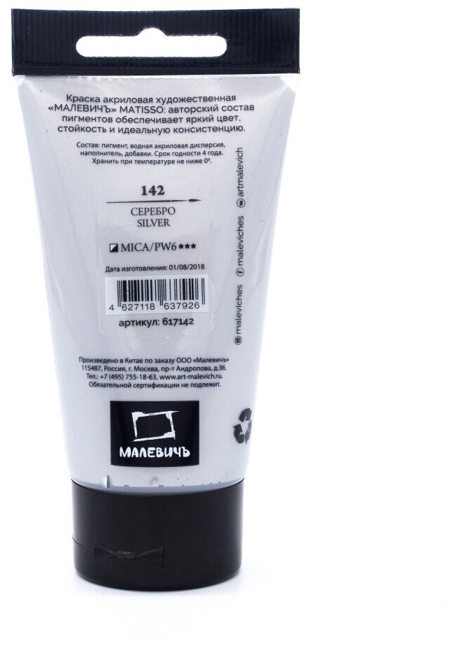 Акриловая краска Matisso (Серебро), 60 мл, Малевичъ информация: