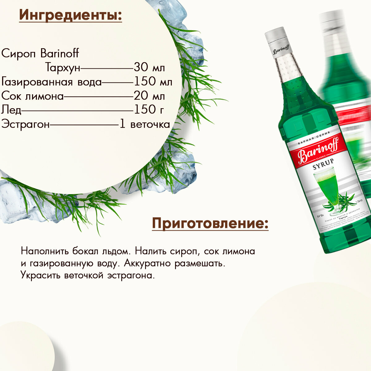 Сироп Barinoff Тархун (для кофе, коктейлей, десертов, лимонада и мороженого), 1л информация: