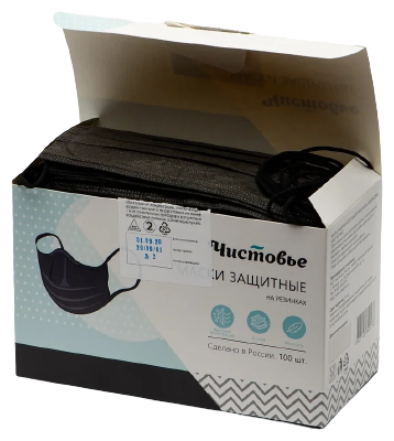 Отзывы на Чистовье, Маска медицинская из нетканых материалов, нестерильная, одноразовая “чистовье” чёрная 100 шт/упк