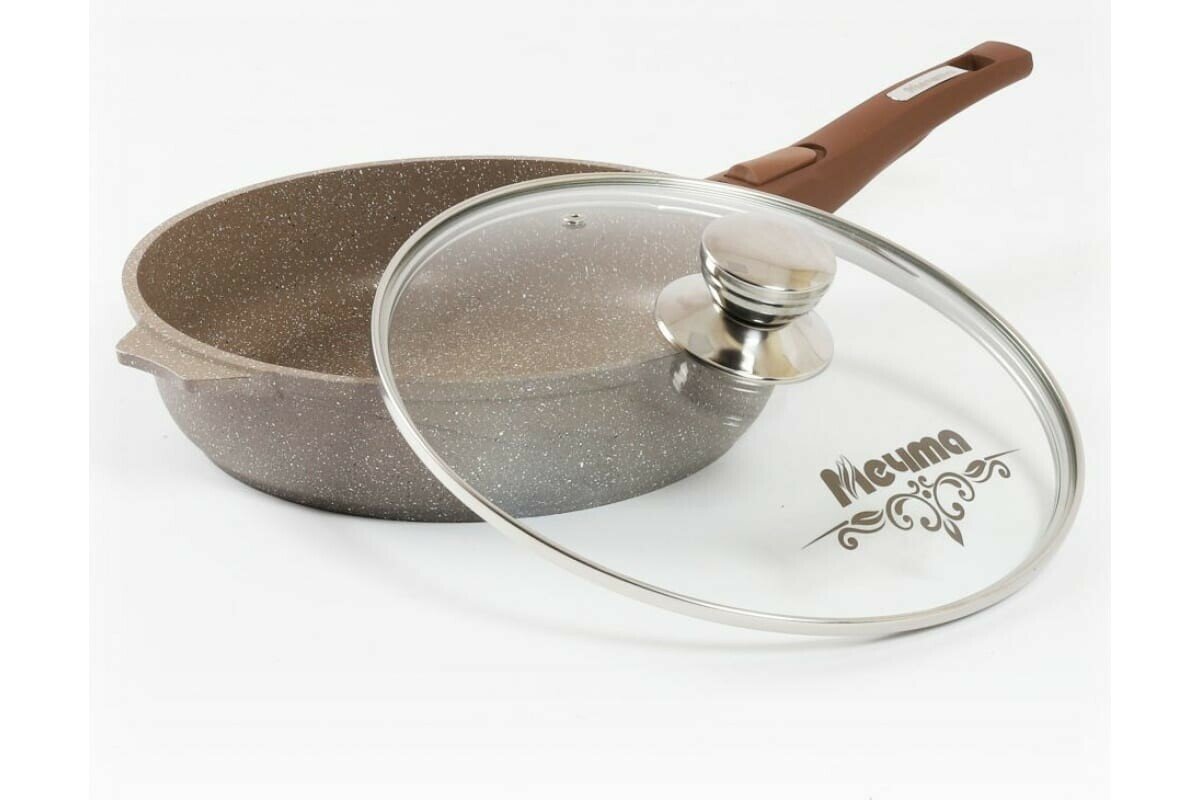 Мечта Сковорода 26см Гранит brown С026806 со съемной ручкой с антипригарным покрытием и стеклянной крышкой информация: