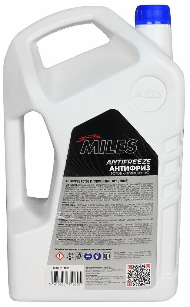 Антифриз MILES AFB5 G11синий 5кг готовый информация: