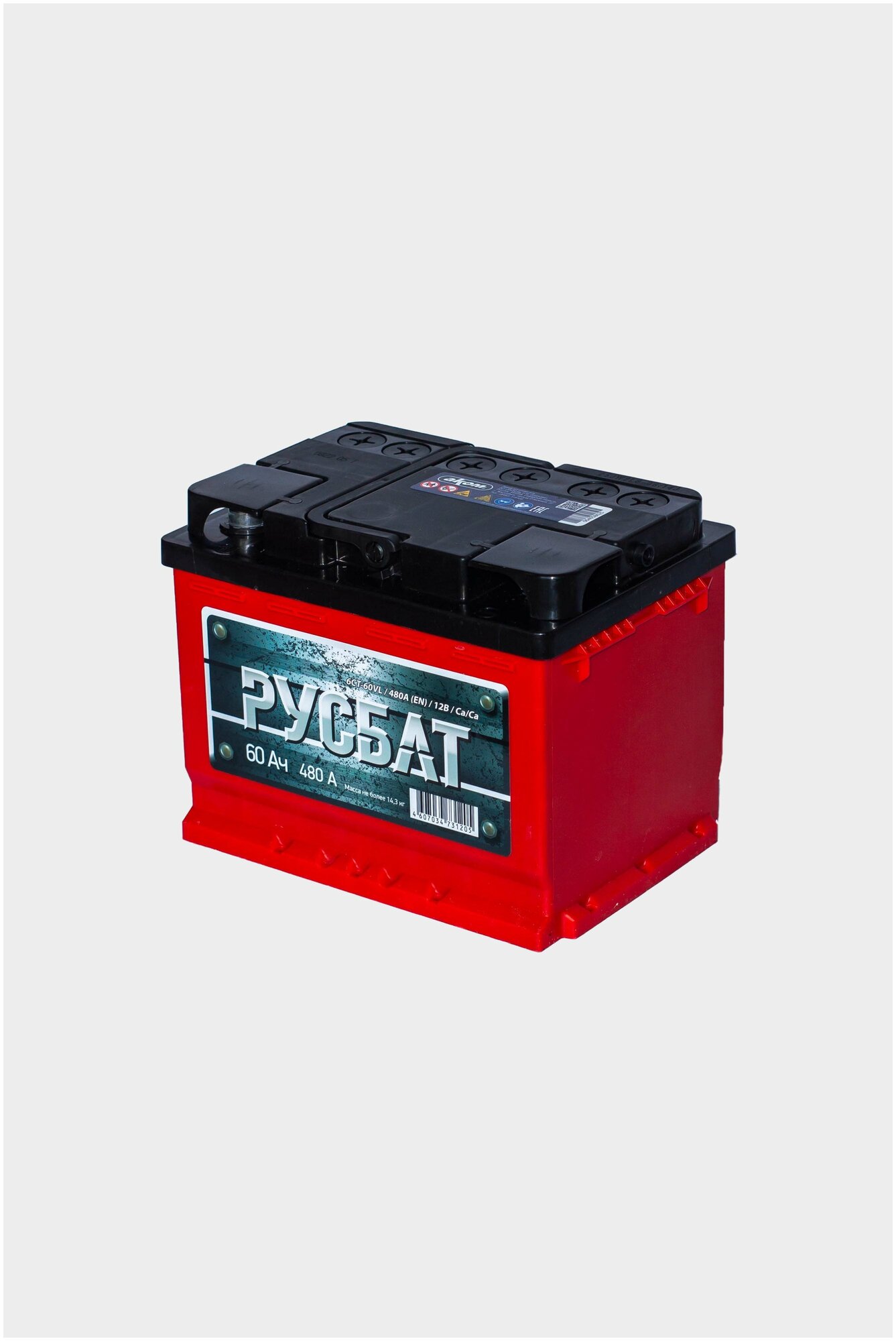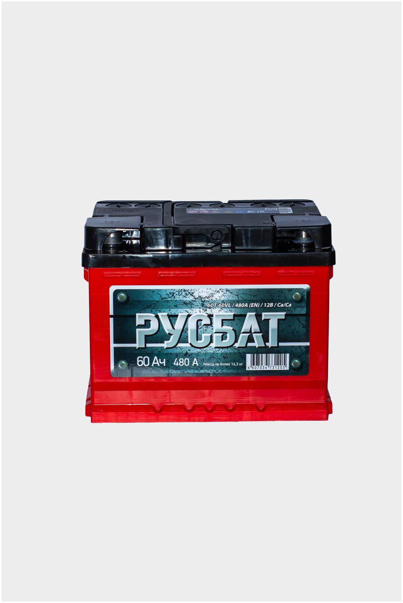 Батарея аккумулятор АКОМ Русбат 60 Ah 480 А прямой полярности 60 ампер 12 v вольт под клемы, внешний свинцово кислотный заряженный, аккумуляторы для легковых автомобилей