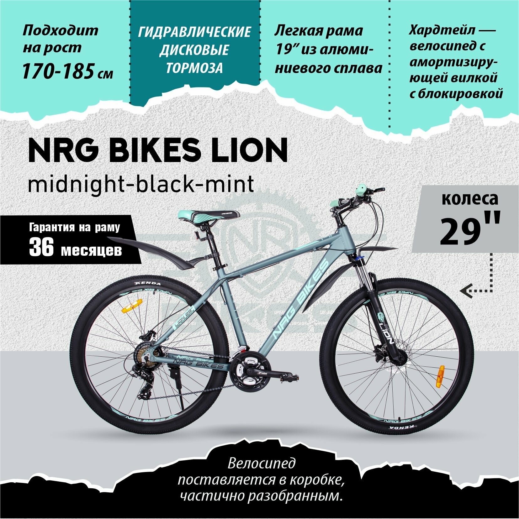 10 цен на Горный Велосипед NRG Bikes LION 29'' AL/19'' midnight-black-mint, Алюминиевая рама, 21 скорость