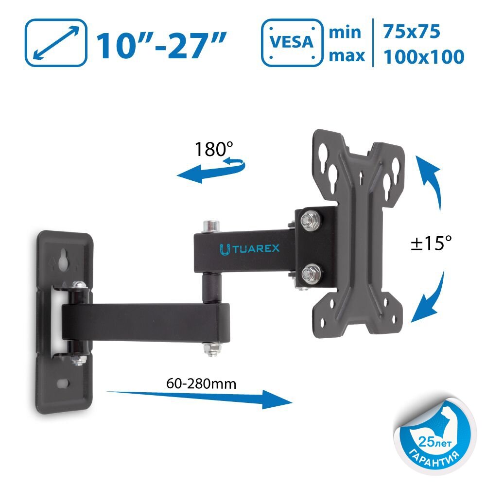 Отзывы на Кронштейн для телевизора на стену / крепление наклонно-поворотное Tuarex ALTA-109 / до 32 дюймов / vesa 100x100