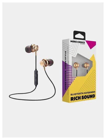 Беспроводные BLUETOOTH наушники More choice BG10 gold вакуумные с шейным шнурком 915 ₽