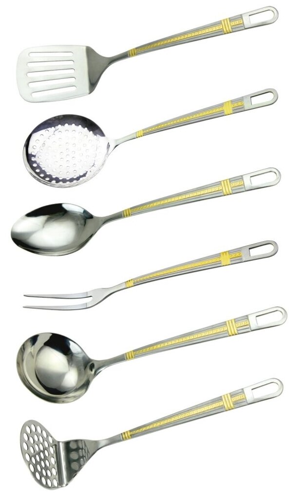 | Состав набора | вилка поварская / картофелемялка / ложка поварская / лопатка / половник / шумовка |