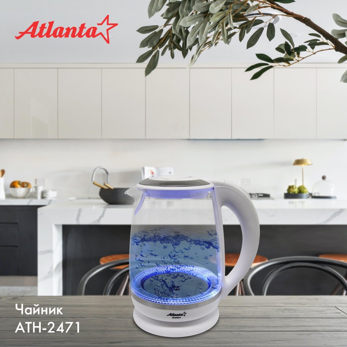 Чайник электрический ATLANTA ATH-2471 стеклянный, 2,0 л, белый