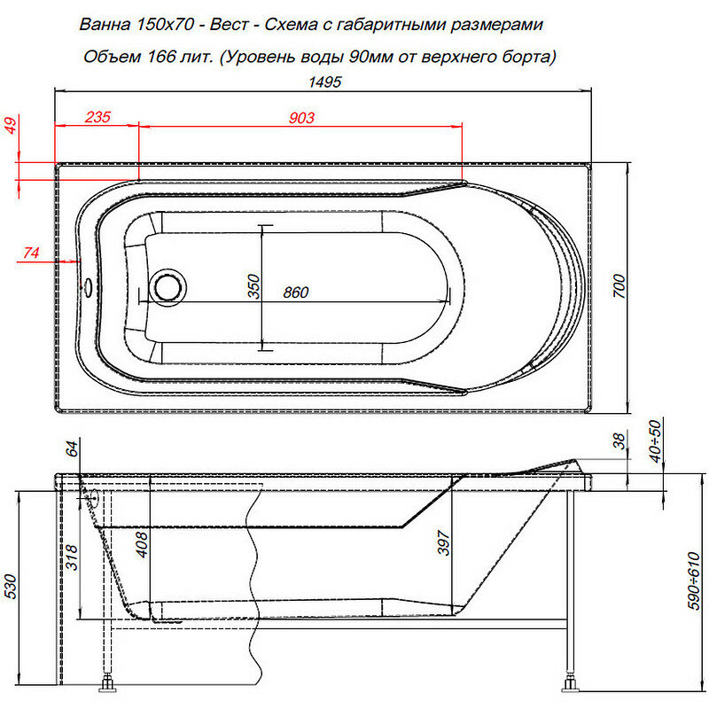 | Подробная комплектация | ванна, каркас |
