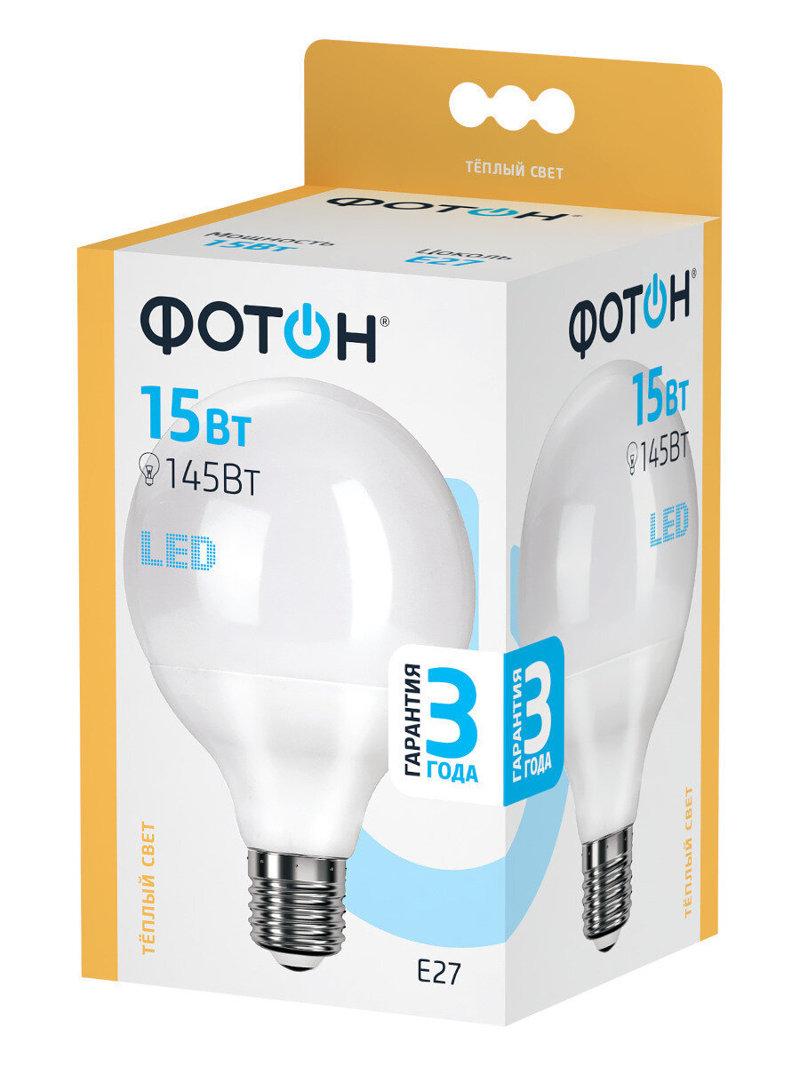 10 цен на Лампочка светодиодная фотон LED G95 15Вт E27 3000К
