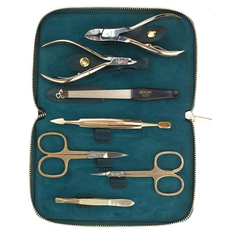 Маникюрный набор DEWAL серии "Современная классика" 7 предметов, футляр натуральная кожа, цвет зеленый (904GREEN)