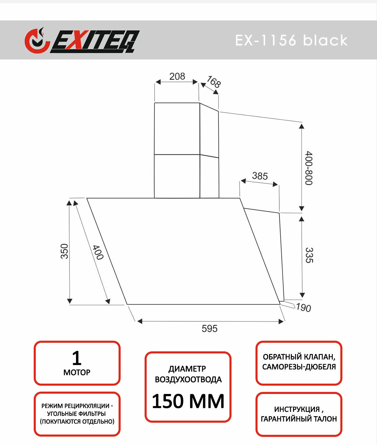 Отзывы на Наклонная вытяжка EXITEQ EX-1156, цвет корпуса black, цвет окантовки/панели черный