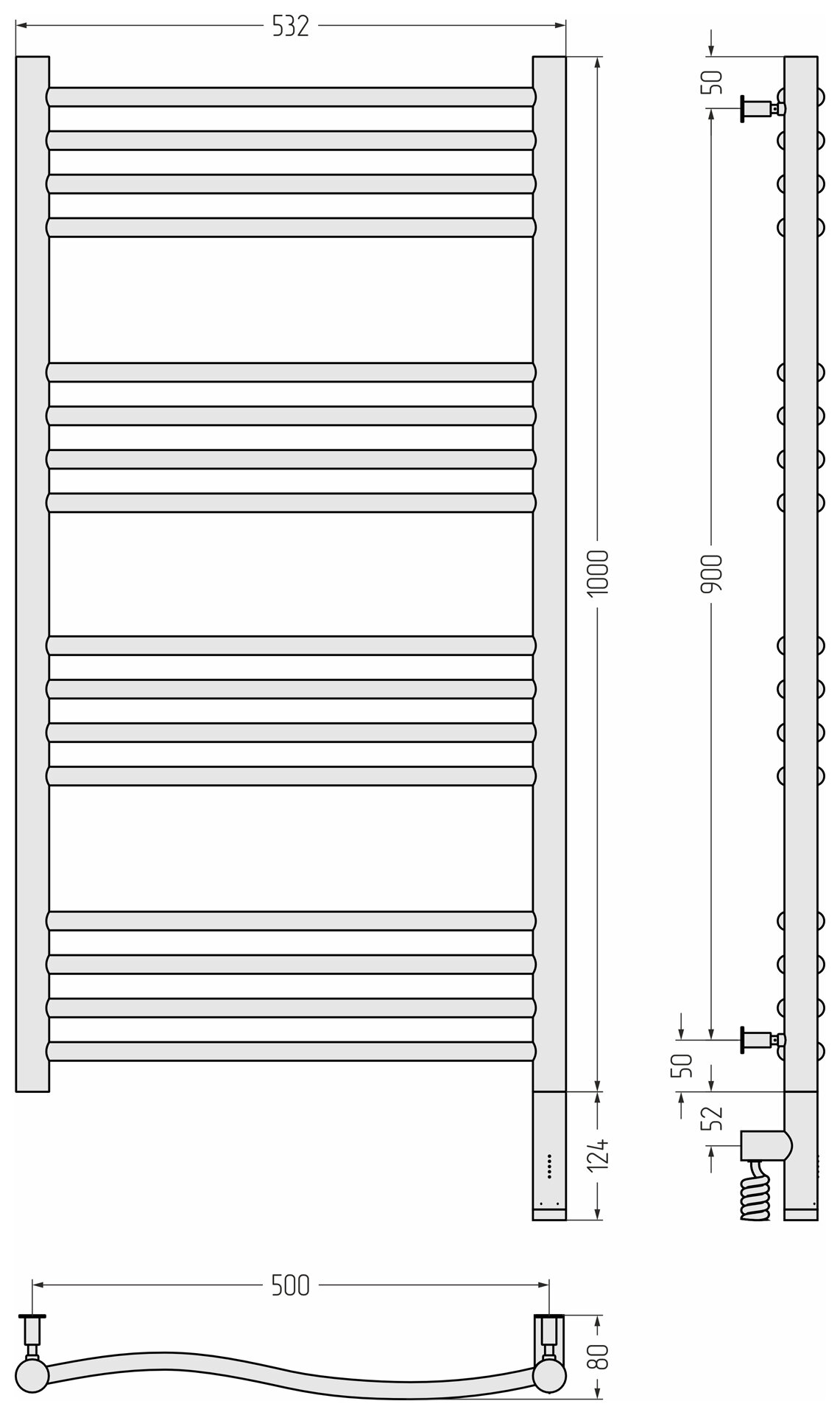 Полотенцесушитель электрический Сунержа 00-5821-1050 Флюид 3.0 Полотенцесушитель электрический РЭБ, 1000х500 мм/ МЭМ правый, без покрытия