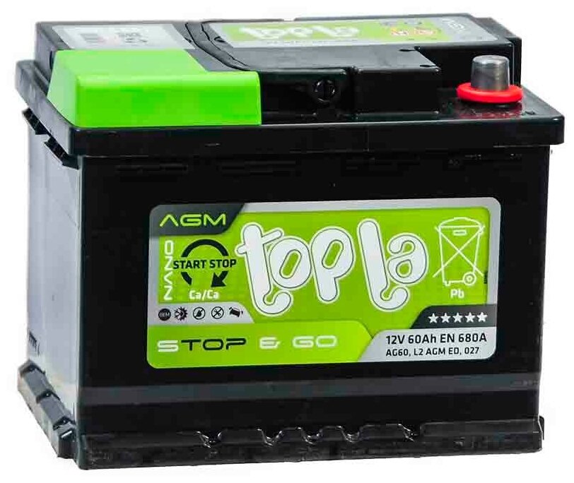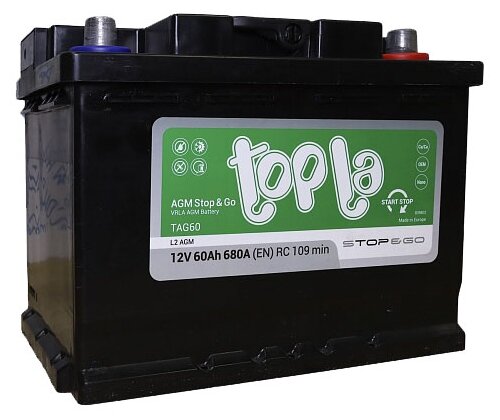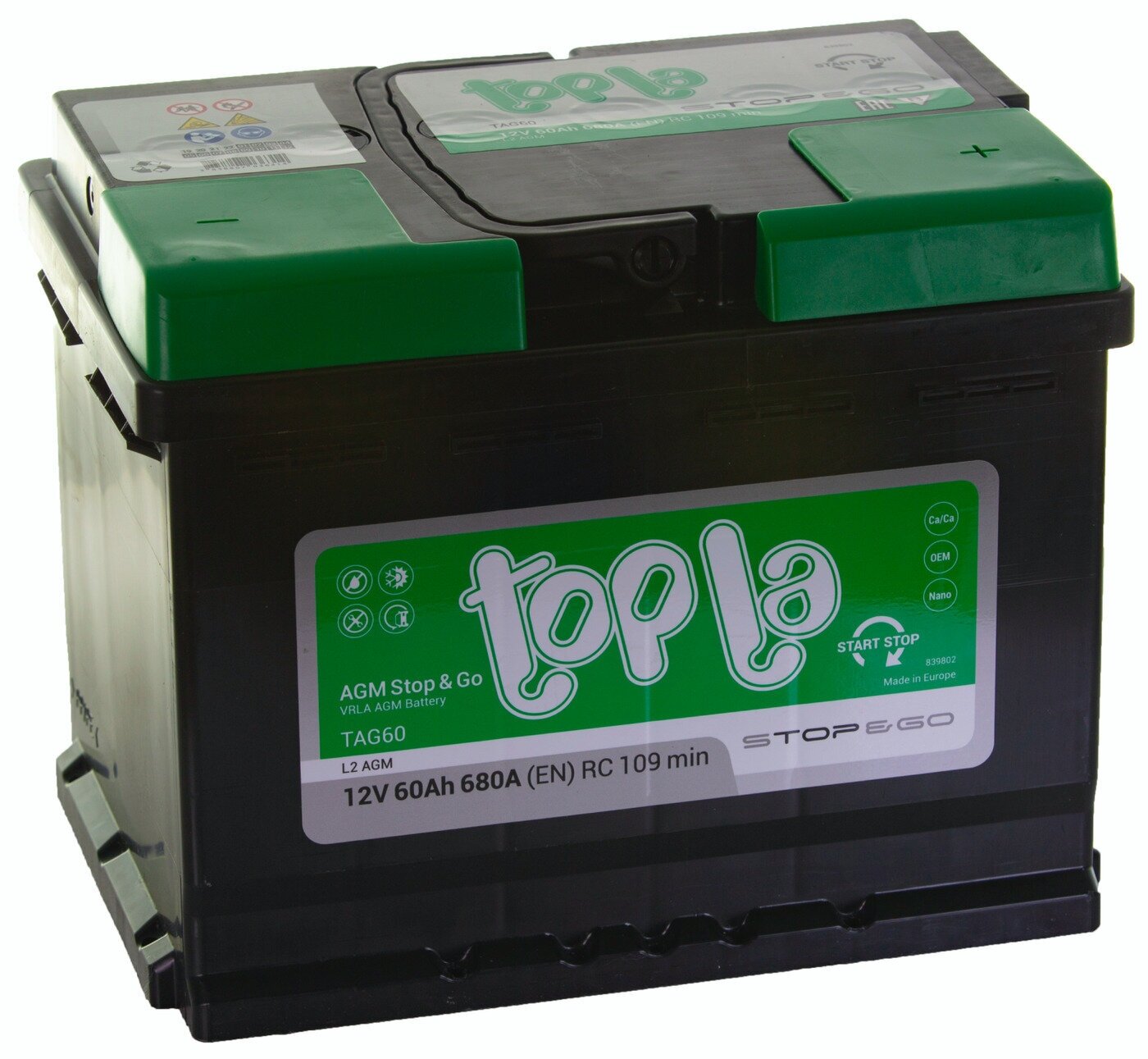 Аккумулятор автомобильный Topla AGM Stop&Go 60 А/ч 680 А обр. пол. 114060 Евро авто (242x175x190)