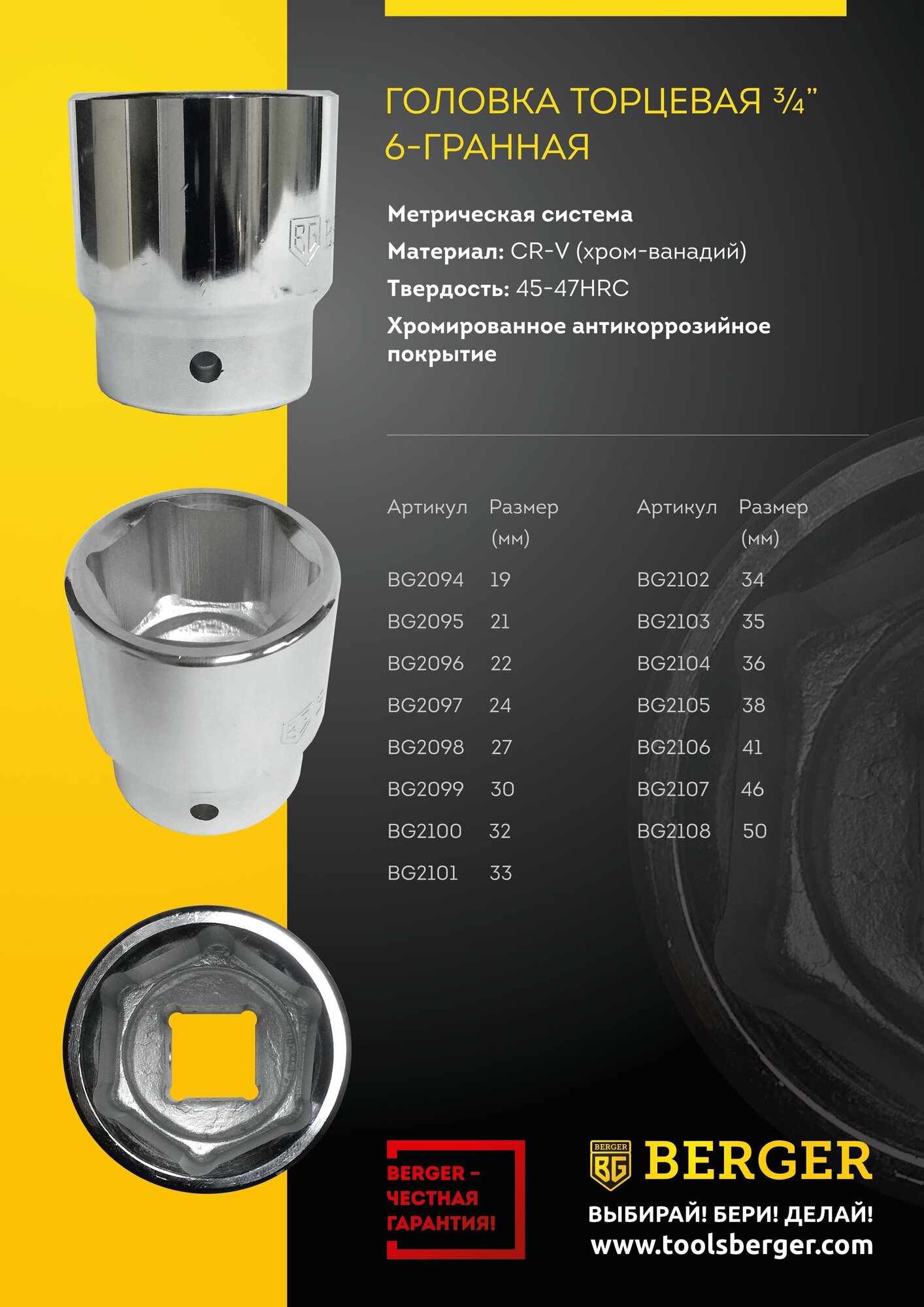 BERGER BG2106 Головка торцевая 34 41мм BERGER BG2106 информация: