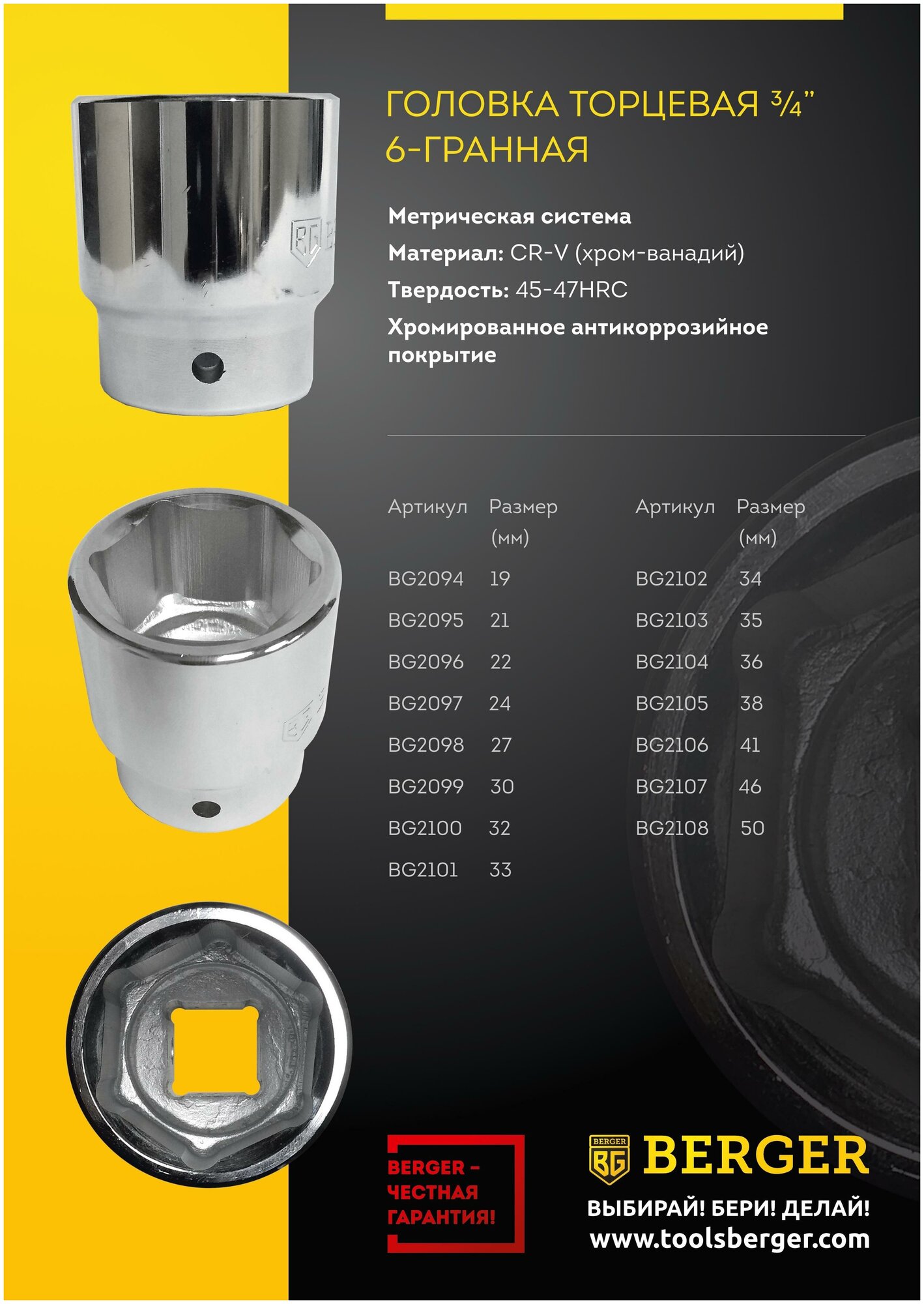 BERGER BG2102 головка торцевая 34 34ММ BERGER BG2102 информация: