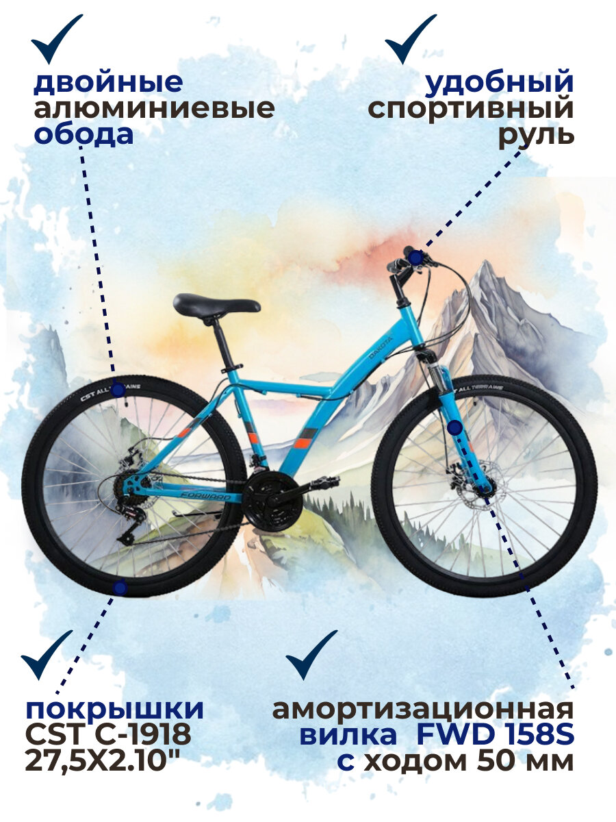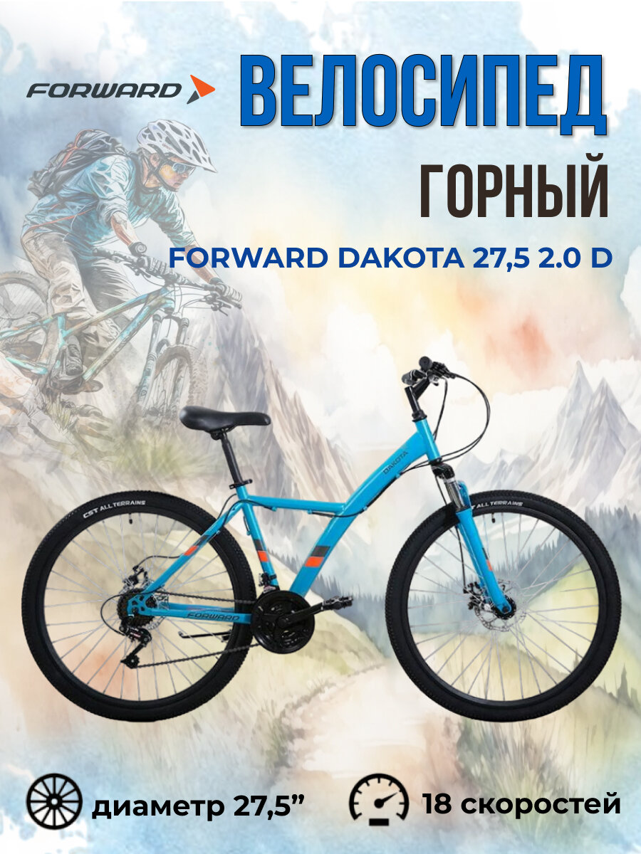 10 цен на Велосипед горный с колесами 27,5" Forward Dakota 27,5 2.0 D рама 16,5" бирюзово-оранжевый 2022 год