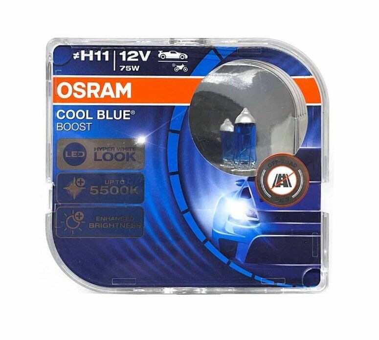 Отзывы на Лампа автомобильная OSRAM H11 12 V (75W) PGJ19-2 COOL BLUE BOOST 5500K (Бокс 2 шт.)
