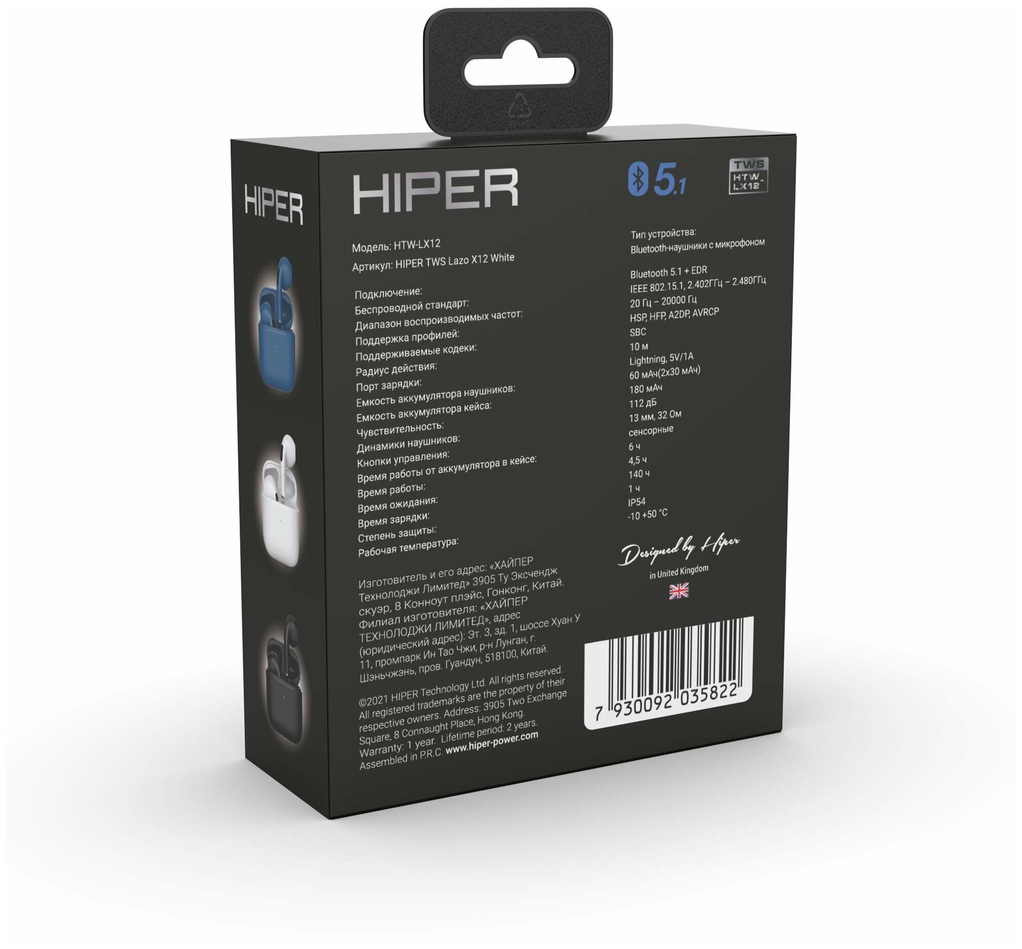 Беспроводные наушники HIPER TWS Lazo X12 White (HTW-LX12) Bluetooth 5.1, Белый информация: