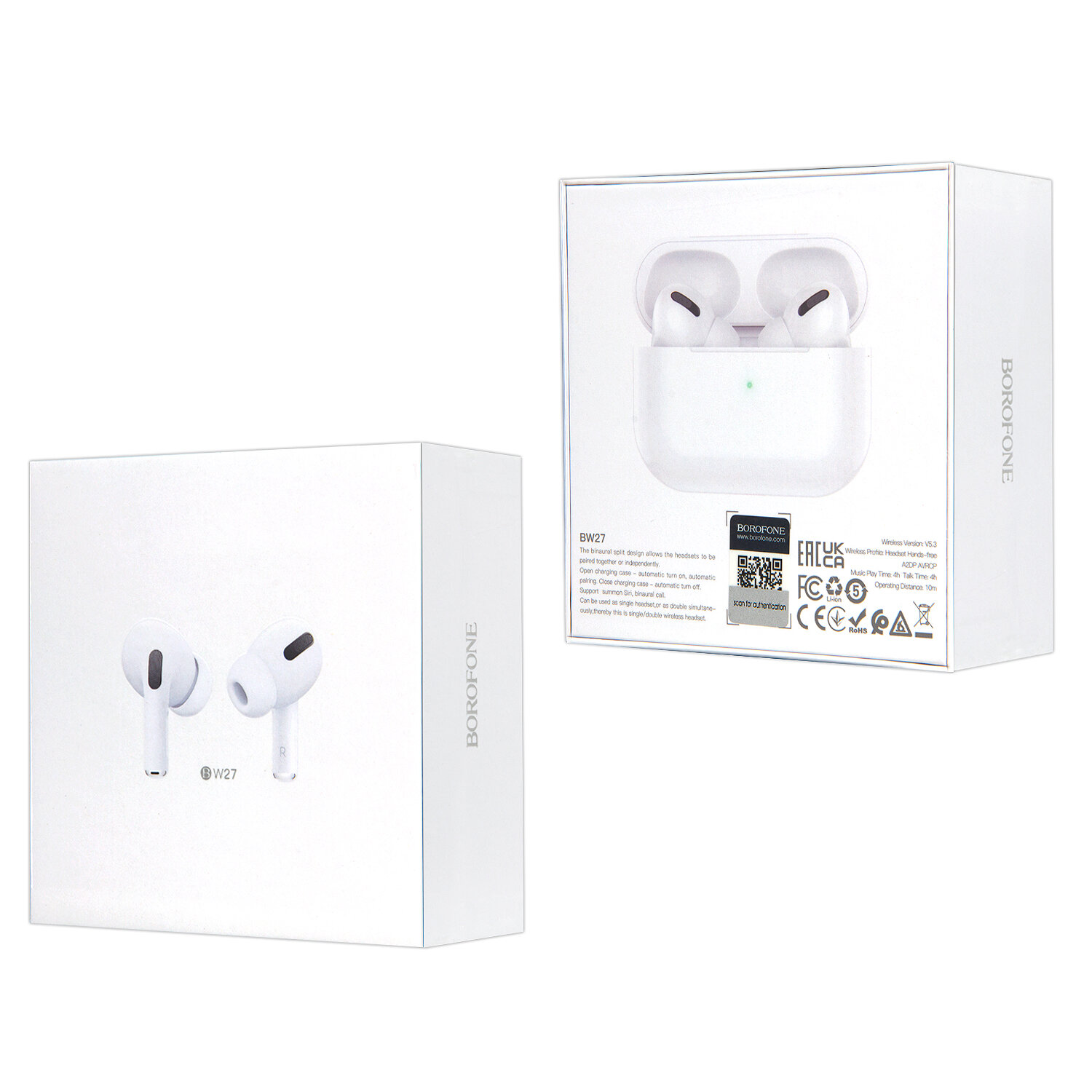 Беспроводные наушники TWS Borofone BW27 BT 5.3 белые информация: