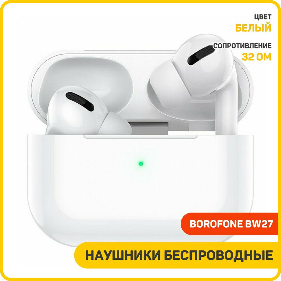 Наушники беспроводные Borofone BW27 (с боксом для зарядки) (Bluetooth) белый 1 530 ₽