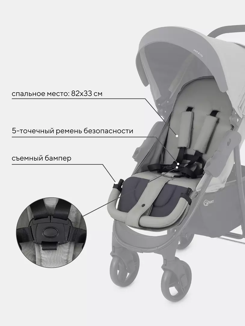 | Особенности | съемный бампер, ремни безопасности, горизонтальное положение спинки, регулировка высоты подножки, мягкие накладки на ремни, смотровое окно |