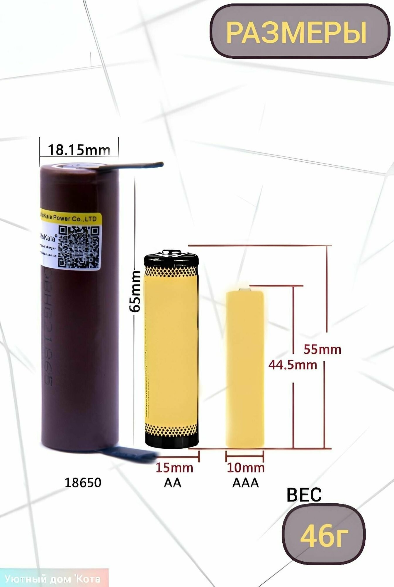 | Типоразмер | 18650 (168A) |