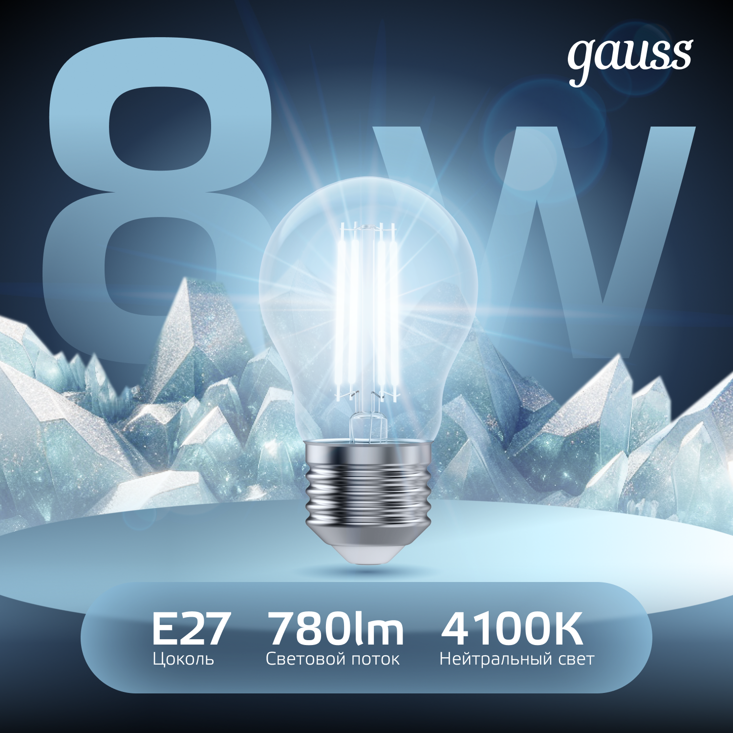 Лампочка светодиодная E27 Груша 8W нейрт-белый свет 4100К упаковка 10 шт. Gauss Filament 1 784 ₽
