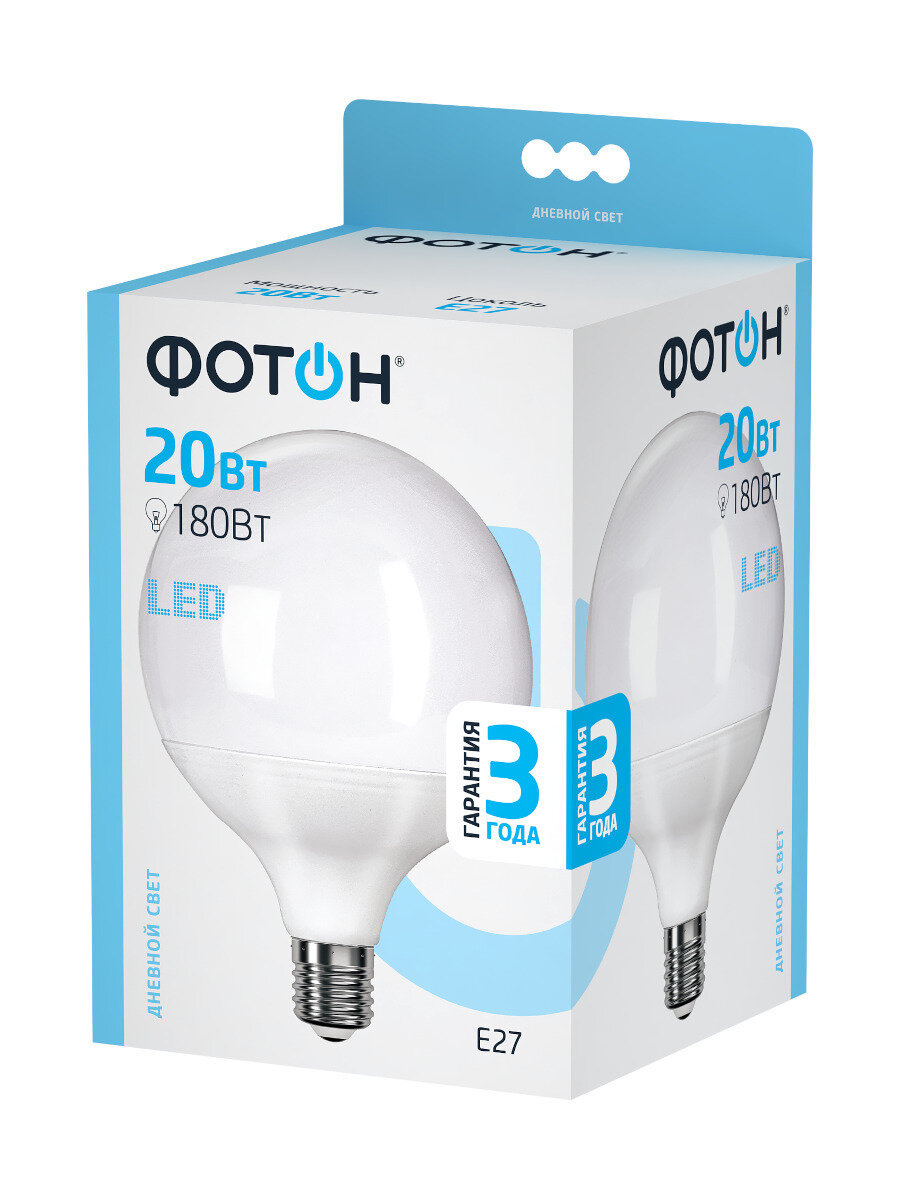 Фотон Светодиодная лампа фотон LED G120 20W E27 4000K 23953 информация: