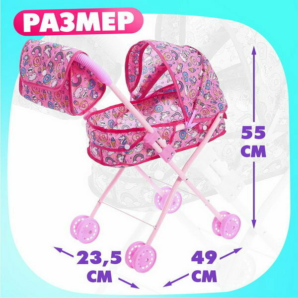 Коляска для кукол с сумкой "Сладкая поняшка" универсальная, металлический каркас информация: