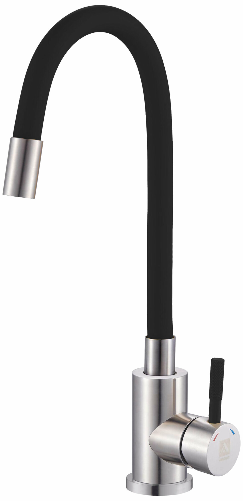 Смеситель для кухни SOLID чёрный, пластичный излив, d-35, нерж. сталь,"ARGO"