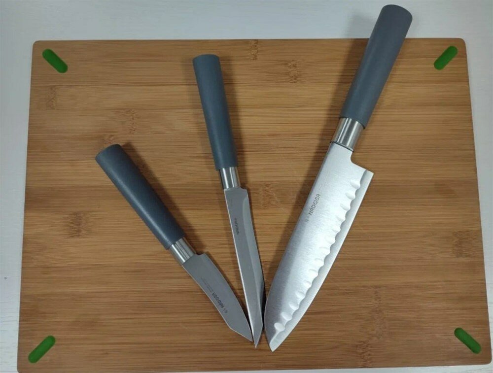 | Типы ножей в наборе | нож сантоку, нож для овощей, универсальный нож |