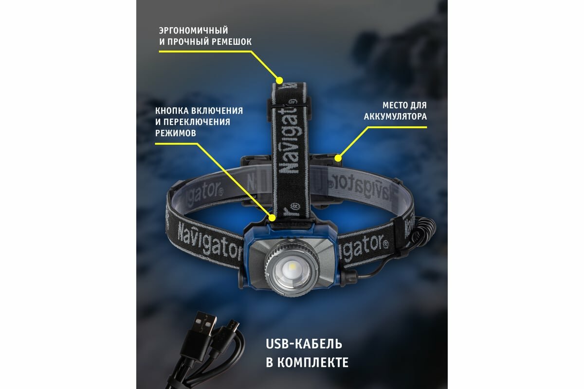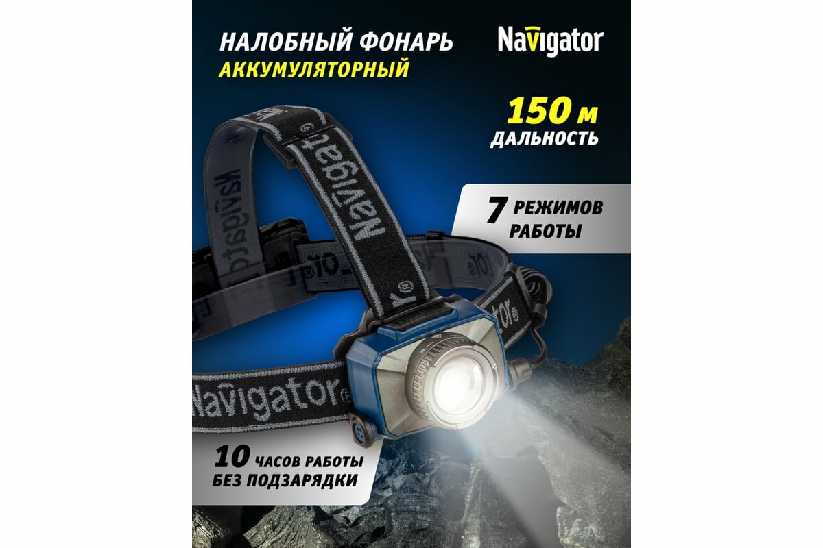 Отзывы на Navigator Фонарь 14 238 Npt-h18-accu налоб. 1CREE LED 10 Вт,7 реж, Li-ion 2Ач 14238