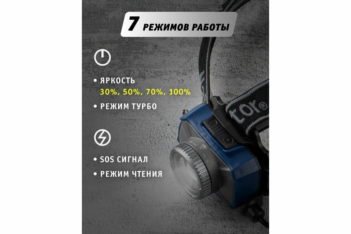Фонарь налобный Navigator 14 238, 7 резимов работы, аккум. Li-ion 2000 мА/ч 3 423 ₽