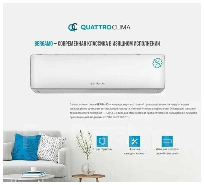 Отзывы на QUATTROCLIMA / Сплит-система кондиционер Bergamo 35 м.кв. QV-BE12WB/QN-BE12WB