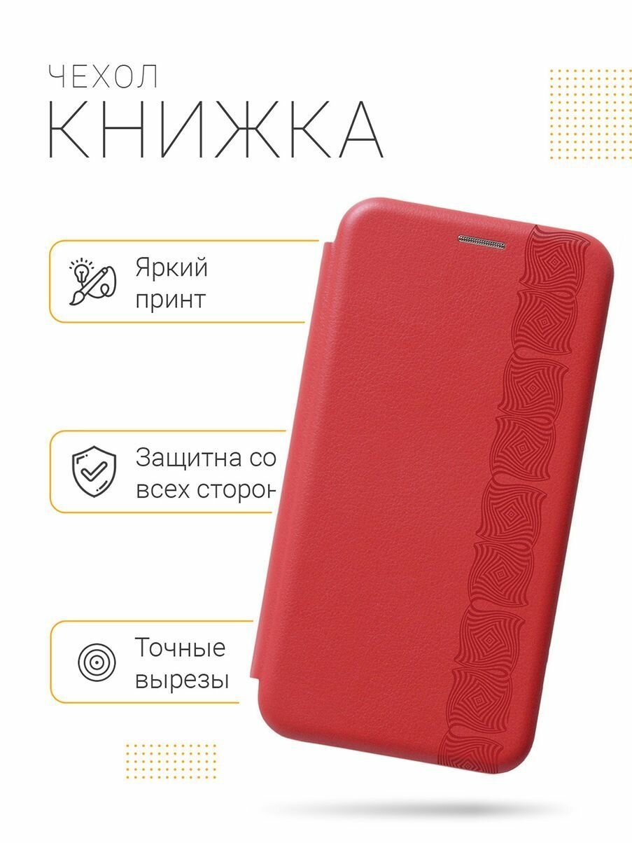 Отзывы на Чехол-книжка на Xiaomi Redmi 8, Сяоми Редми 8 с 3D принтом "Charming Line" красный