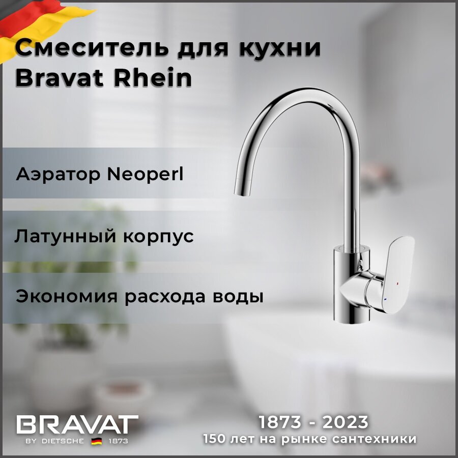 10 цен на Смеситель для кухни Bravat F7429564CP-ENG Rhein Смеситель для кухни, хром