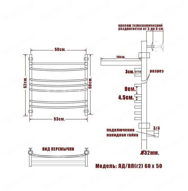 Полотенцесушитель водяной Ника Arc ЛД (г2) ВП 60/50-7 с полкой информация: