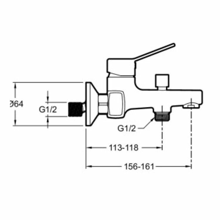 Смеситель на раковину настенный Эверест B46-350 с круглым поворотным изливом, кран-буксы 1/2", хром