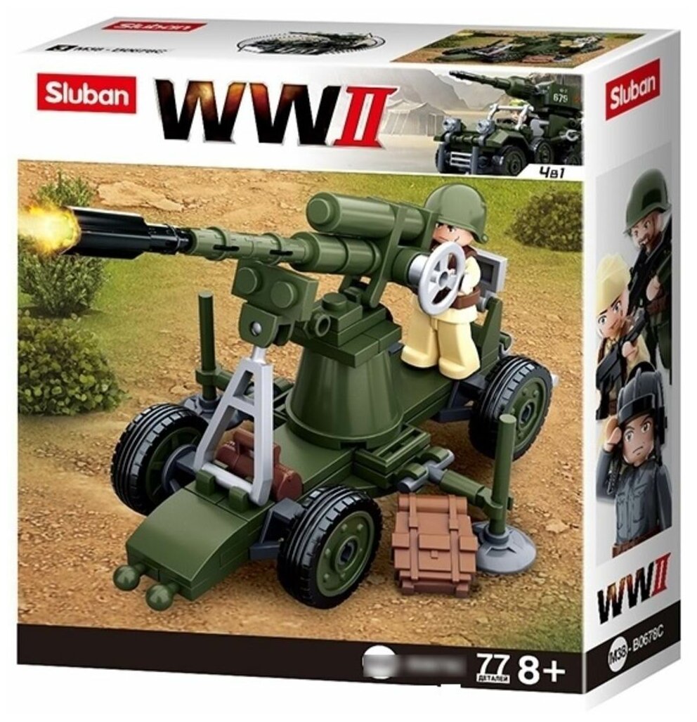 Конструктор "Армия - Вторая Мировая Война", Зенитная установка, 4 в 1, 77 деталей, Sluban информация: