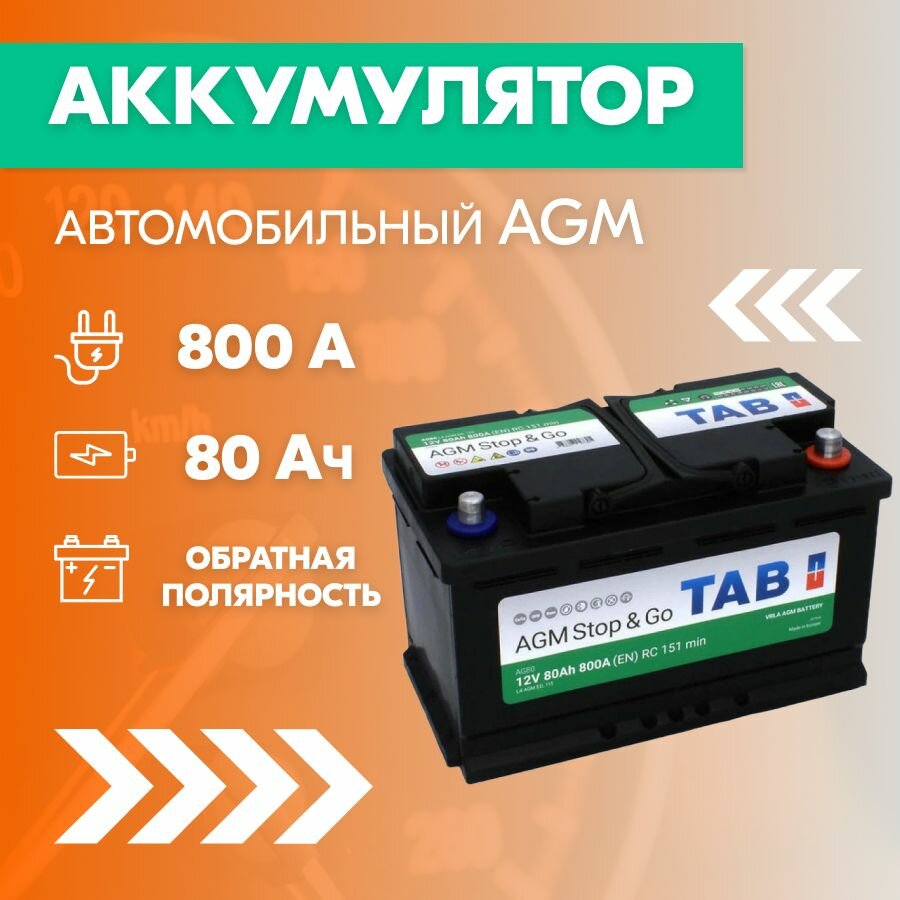 Аккумулятор автомобильный TAB AGM Stop&Go 80 А/ч 800 А обр. пол. Евро авто (315x175x190) 213080