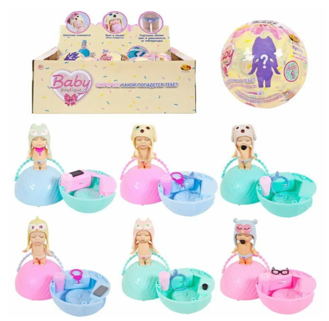 | Комплектация | - пупс; - шапочка; - аксессуары; - шар. |