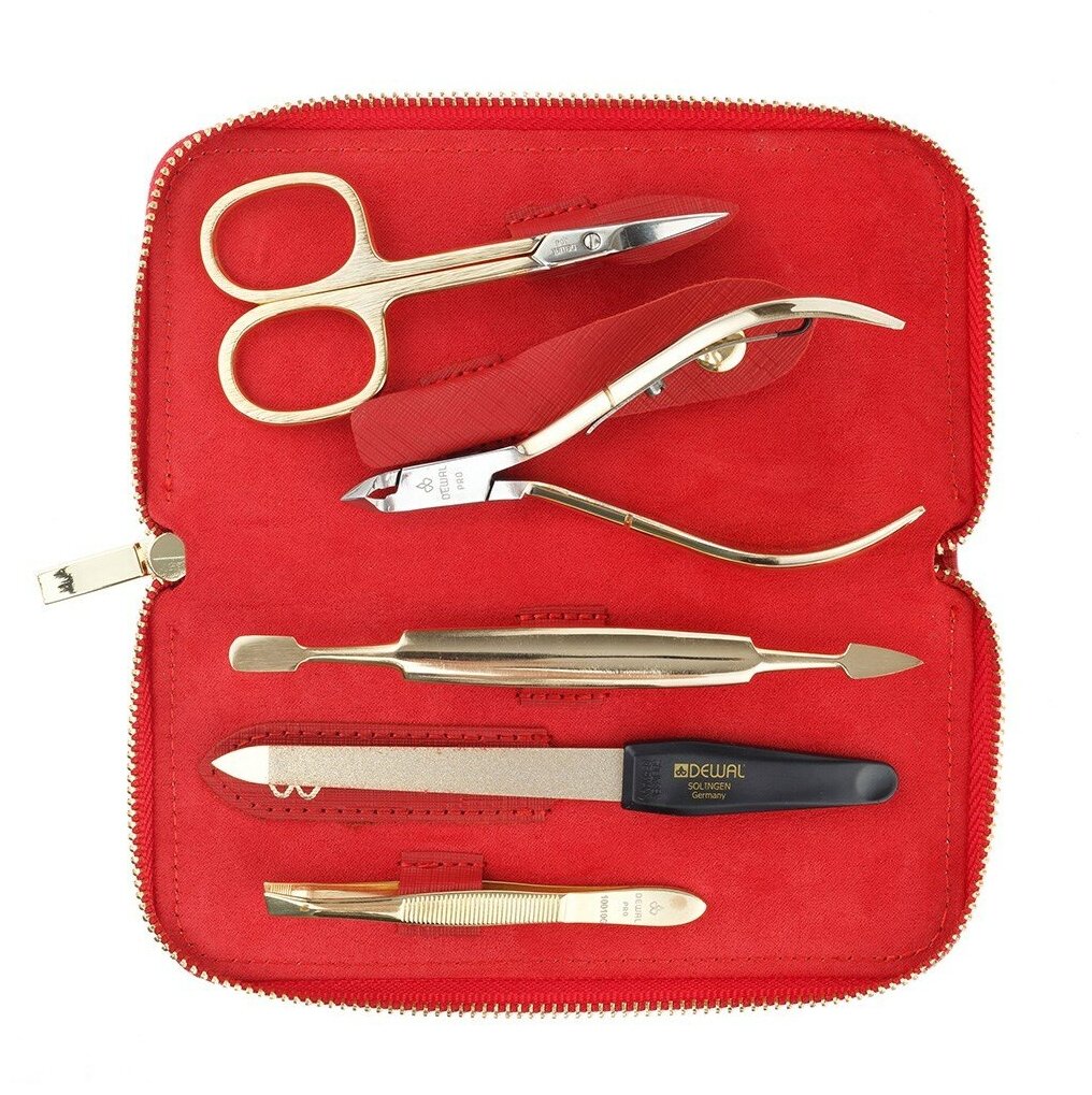 Маникюрный набор DEWAL, 5пр. Футляр: натуральная кожа, цвет красный