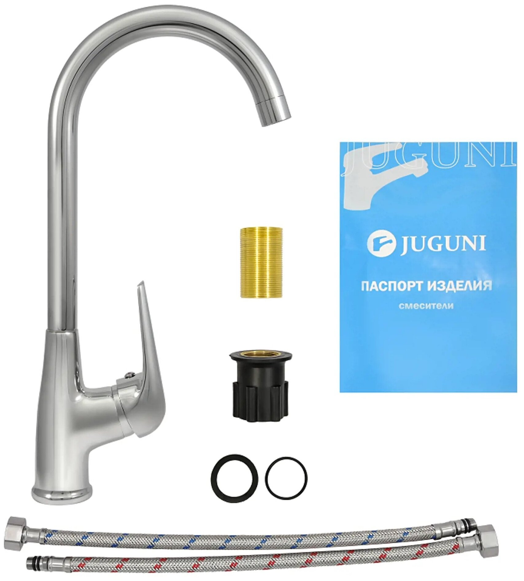 10 цен на Смеситель для мойки с высоким поворотным изливом, креп. гайка, Juguni 0402.132