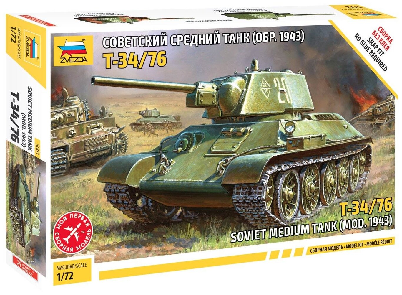 Модель для сборки танк Средний советский Т-34/76 образца 1943, масштаб 1:72, Звезда, 5001