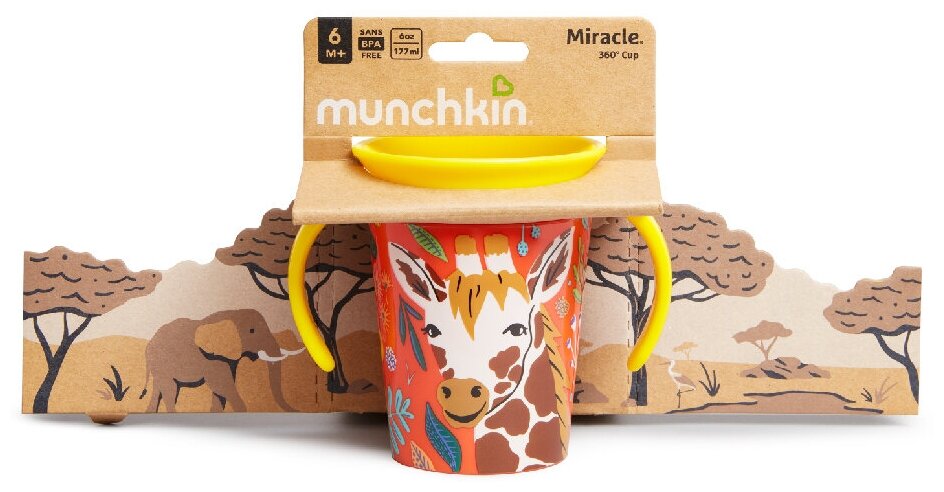 Munchkin поильник-непроливайка MIRACLE® 360° ЭКО с ручками Жираф 177мл. 6+