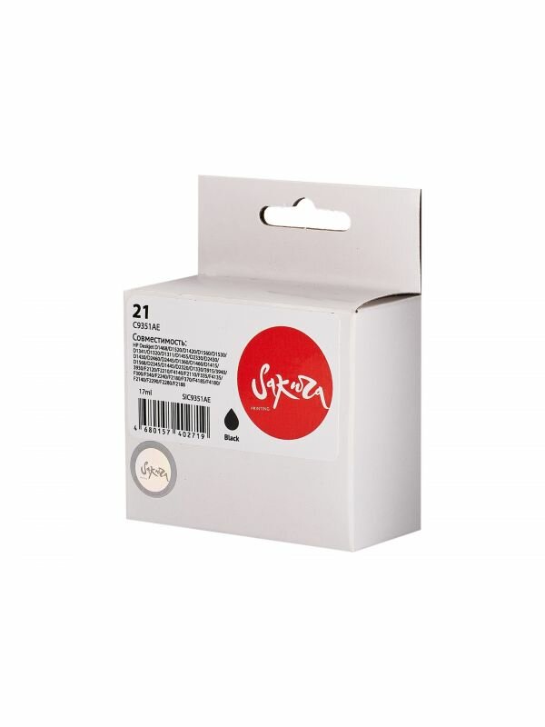 Картридж струйный Sakura 21 / C9351AE черный, пигментный тип, 17 мл., 260 стр. для HP (SIC9351AE)